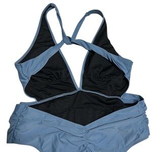 One-piece swimsuit women swimsuit cutout lumbar necktie deep V neck ruched high cut Size XL