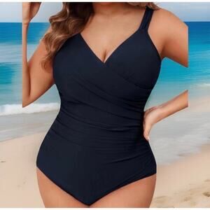 Feel confident in this CUPSHE Plus Size 1X One Piece Swimsuit in navy blue. Designed with a flattering V-neck wrap front and tummy control ruching, it enhances curves while providing comfort and support. Adjustable straps and full lining offer a secure, flexible fit for any activity — from beach days to pool parties. Made with a durable polyamide and elastane blend, this swimsuit delivers both style and stretch for a smooth, slimming look. Perfect for curvy women who love chic, comfortable swimwear.