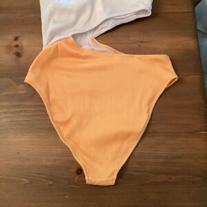 CUPSHE SIZE LARGE ONE SHOULDER CUT OUT ONE PIECE SWIMSUIT WHITE LIGHT ORANGE