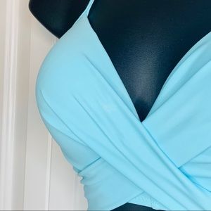 CUPSHE Sky Blue Halter Tie Swimsuit Bikini Top