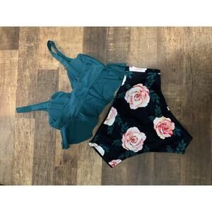CUPSHE Teal Roses Women’s Size 0X Two Piece Swimsuit NWT Beach Summer
