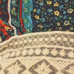 CUPSHE Tie Front Blue Boho Floral Lace Trimmed Swim Cover Up Size Small