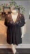 Design: This black deep V-neck Drawstring A-line Dress adopts dolman short sleeve and tie waist design, and uses ethnic print patterns to give people a mysterious and elegant feeling.