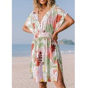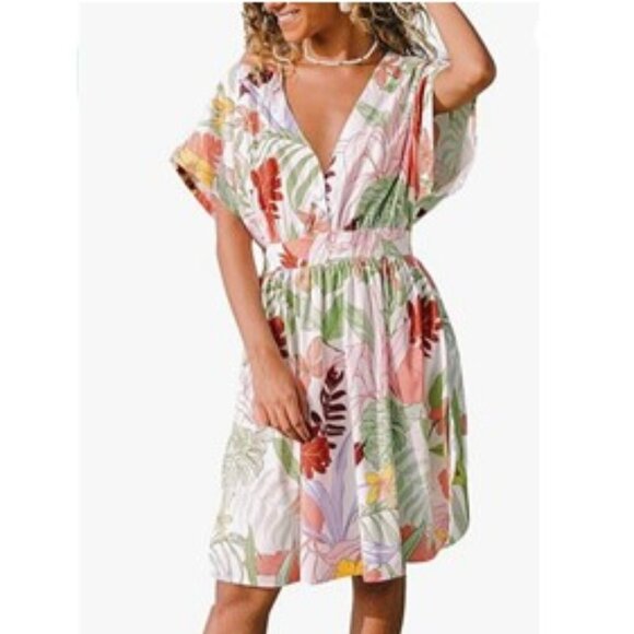 CUPSHE Women V Neck A Shape Elastic Waist Above Knee Floral Dress with Short Dolman Sleeves - NWT