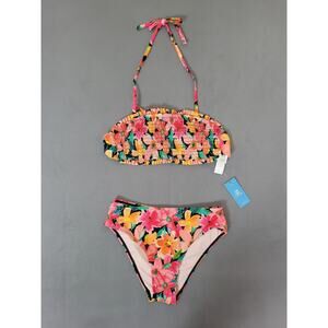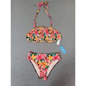 CUPSHE Womens Bikini Set Two Piece Swimsuit Bandeau Tie Top Mid Waisted XSMALL . Condition is New with tags.