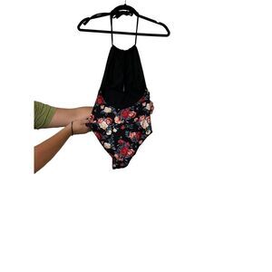 CUPSHE Women's Black Floral Plunging Halter Open Back One Piece Swimsuit