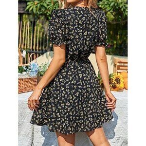 The Cupshe Excellent Style Black Floral Print Puff Sleeve Mini Dress is one of those pieces that's always on trend! Lightweight woven fabric, with a white and yellow floral print, shapes this dress that has a V-neckline, a lightly gathered bodice, and short puff sleeves with tying cuffs. A set-waist tops a twirly mini skirt.