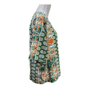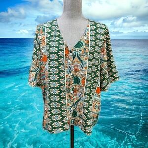 Feature: V neck, half sleeve, allover print, button, pullovers, womens summer tops, fashionable