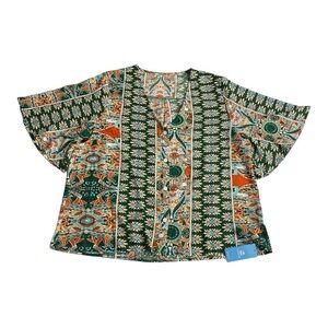 CUPSHE Women's Floral V Neck Button Front Bell Sleeve Blouse Top XL