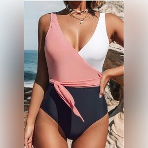 •Style Profile: CUPSHE Women's Knotted Color Block One Piece Swimsuit Small White Peach Navy NWT
