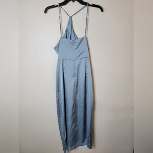 CUPSHE Women's L Halter Neck Cross Front Dress Slip Baby Blue Vacation Wedding