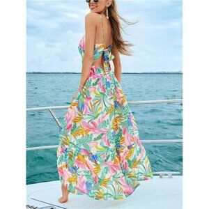 CUPSHE Women's Maxi Dress Floral Print Twisted V Neck Sleeveless Long Dress