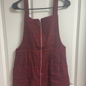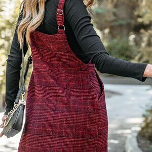 The Plaid O-Ring Zip Mini Pinafore Dress. The classic plaid pattern and stylish O-ring zip detail effortlessly come together, creating a dress that's as versatile as it is chic, making it a wardrobe essential. The dress is made of 100% polyester so that it is breathable and cozy with slightly elasticity.