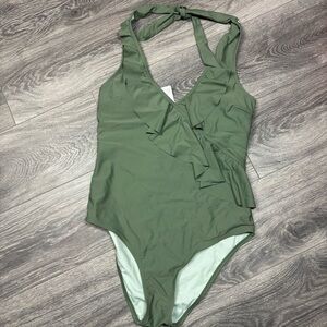 CUPSHE Women's One Piece Halter V Neck Ruffle Backless Swimsuit New Large
