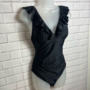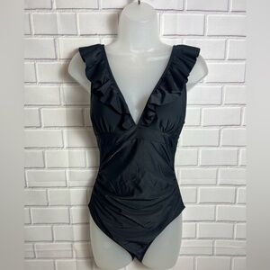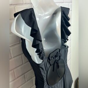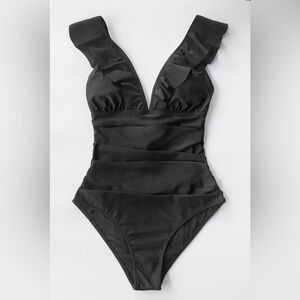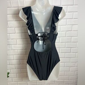 CUPSHE Women's Ruffled One Piece Swimsuit V Neck Lace Up/size M