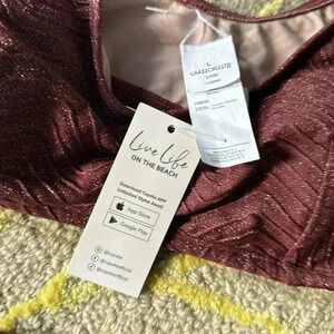 CUPSHE Women's Scoop Neck Wide Straps High Waisted Bathing Suit High Cut Lurex L