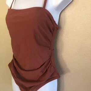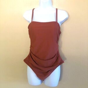 CUPSHE Women's Square Neck Tummy Control Rushed Strappy One Piece Swimwear Sz M