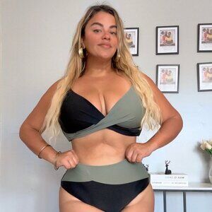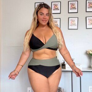 CUPSHE Women's Two-Piece Bikini Set High-Waisted Swimsuit V-Neck Knot Front