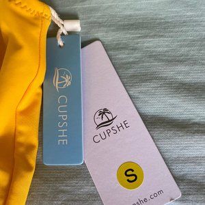 CUPSHE Yellow Blue Colorblocked Open Back One-Piece Swimsuit Sexy V-neck, Size Small, NEW with Tag