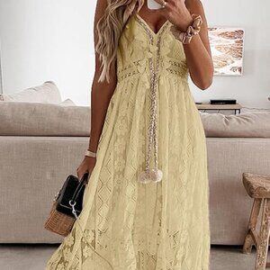 CUPSHE Yellow, Summer Dresses Maxi Sun Dress, Casual Flowy Spaghetti Straps, MED