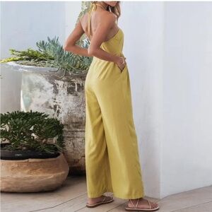 NWT! CUPSHE halter tie around neck wide leg jumpsuit with pockets color, yellow/mustard size large