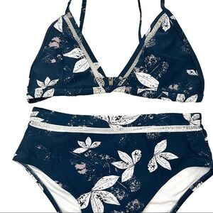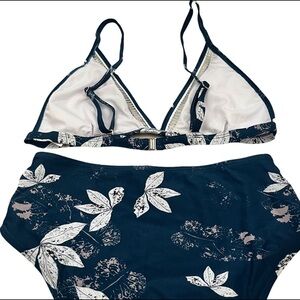 * Dark navy blue w/ white leaf print & eyelet trim detail