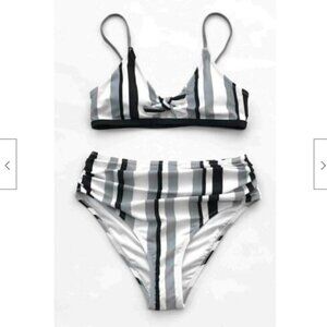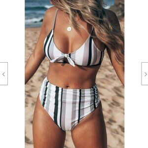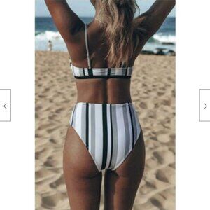 CUPSHE striped high waist bikini top and bottom M