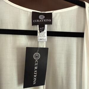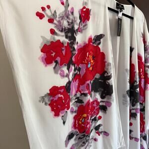 CURATIONS | Black Red and White Fringe Trimmed Kimono Swim cover up | 2x - 3X