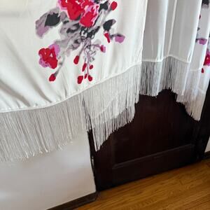 CURATIONS | Black Red and White Fringe Trimmed Kimono Swim cover up