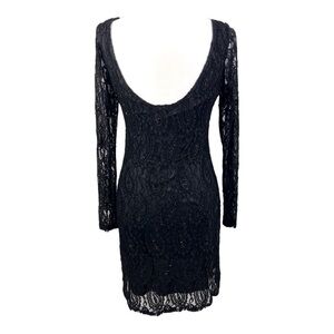 CURE Black Lace Bodycon Mini Dress Medium Scoop Back Long Sleeve Glitter Sheer