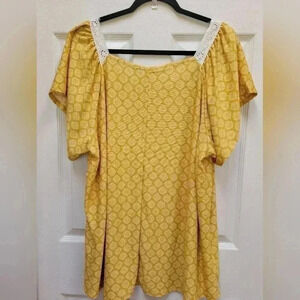 CURE Yellow & Lace Sweetheart Neck Flutter Sleeves Top Plus Size 3x
