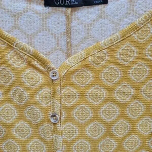 CURE Yellow & Lace Sweetheart Neck Flutter Sleeves Top