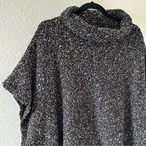 CURIO New York Wool Blend Turtleneck Poncho Teddy Sweater Sz S/M in great condition/ stretchy/ cozy warm / Black and Beige