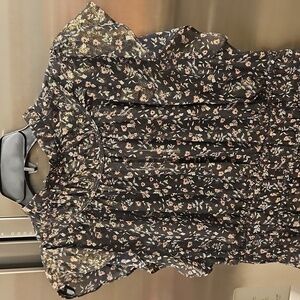 💕CURRENT AIR💕 Smocked Flutter-Sleeve Blouse ~ Micro Floral Print Large L NWT