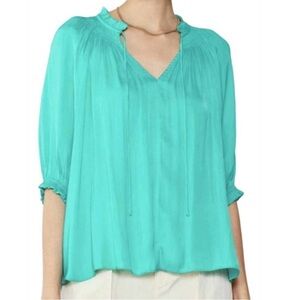 CURRENT AIR short sleeve tie front top in turquoise size XS oversized