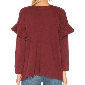 CURRENT ELLIOT Burgundy Ruffle Sleeve Comfy Lightweight Sweatshirt Size M NWOT
