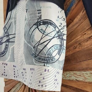 Designer collaboration gives fresh view on a simple denim skirt in postmark print.