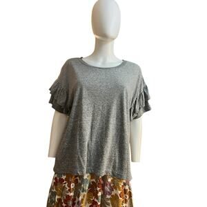 CURRENT / ELLIOTT Heather Grey The Ruffle Roadie Sleeve Knit Top Size 1 S