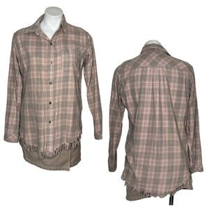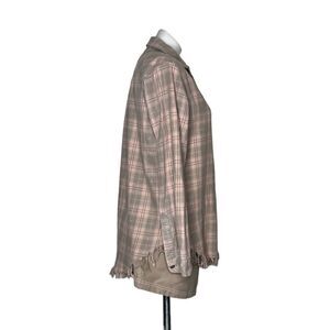CURRENT ELLIOTT Plaid Shirt The Prep School Fray Pink Taupe Tinsel Size 2