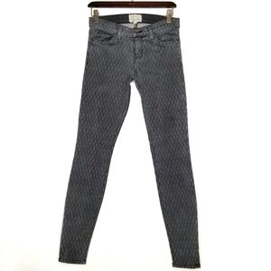 CURRENT/ELLIOT The Ankle Skinny Fishnet Printed Jeans Gray Women's 26 Low Rise