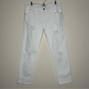 CURRENT/ELLIOT The Fling Distressed White Jeans in Sugar Destroy