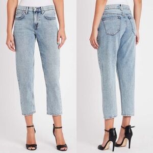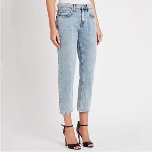 CURRENT/ELLIOT The His Jean Mid Rise Light Wash Cropped Jeans in Channel Blue