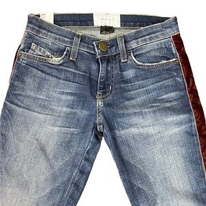 CURRENT/ELLIOTT THE STILETTO TOWNIE W/SLANTED STEP HEM TUXEDO STRIPE DENIM JEANS