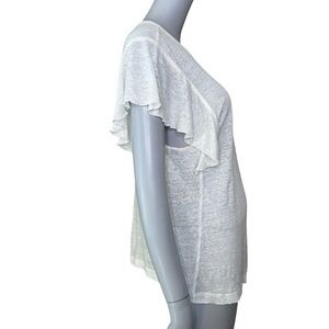 Size 4 = XL. Excellent condition. Comes with original hang tag. Style # 20-2-005809-TS01191 The color is “Sugar” - a creamy white. Lightweight, 100% Linen slub knit. Flutter sleeves. Scoop neck. Relaxed fit. Pretty sheer. I wore it as a layering top under sleeveless sundresses when I wanted more coverage. Or I would wear a cami under this top. Shown modeled on a size 0 mannequin - fit will differ. Approximate measurements (taken when laying flat - can’t guarantee fit):