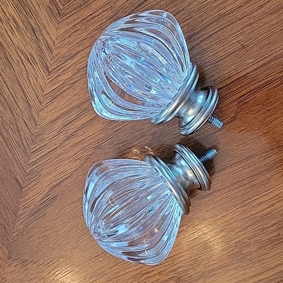 Upgrade your window coverings with these beautiful curtain rod finials. Colors are clear and silver. These fit on 1" curtain rods.