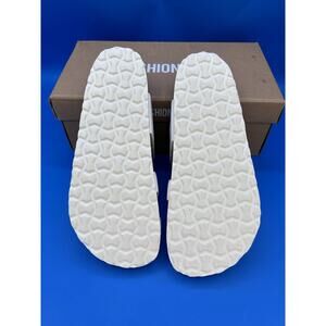 The CUSHIONAIRE Luna Cork Footbed Women's Sandals are comfortable slip-on slides in size 7W. These white sandals feature a solid color design with an approximately 1.25 inches platform heel, making them a stylish and comfortable option for women. Crafted by the brand CUSHIONAIRE in the United States, these sandals are part of the Comfort Slide product line and offer a relaxing wear for everyday wear. The cork footbed adds a touch of luxury to these versatile sandals, suitable for various occasions.