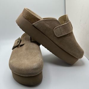 CUSHIONAIRE Women's Genuine Suede Cork Footbed Platform Clog with +Comfort 7 SAN