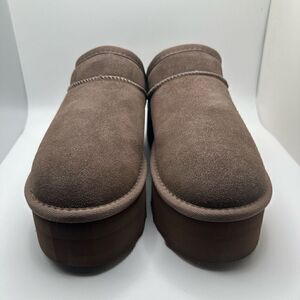 CUSHIONAIRE Women's Genuine Suede Cozy Mule Platform +Memory Foam 8.5 TAUPE