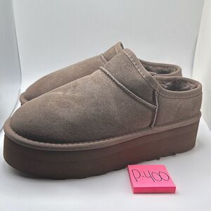CUSHIONAIRE Women's Genuine Suede Cozy Mule Platform +Memory Foam 9 TAUPE