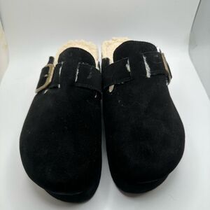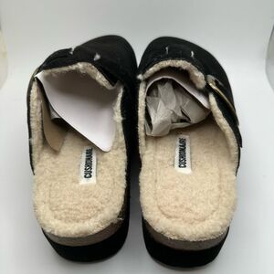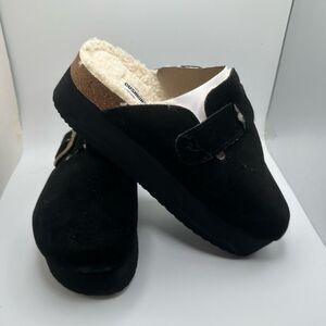CUSHIONAIRE Women's Granola Fur Genuine Suede Faux Fur Lined Cork Footbed Platfo